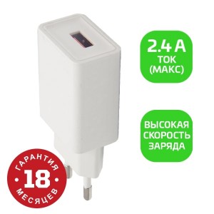 Сетевой б/п GoPower GP1U 1USB до 2,4 12W,белый