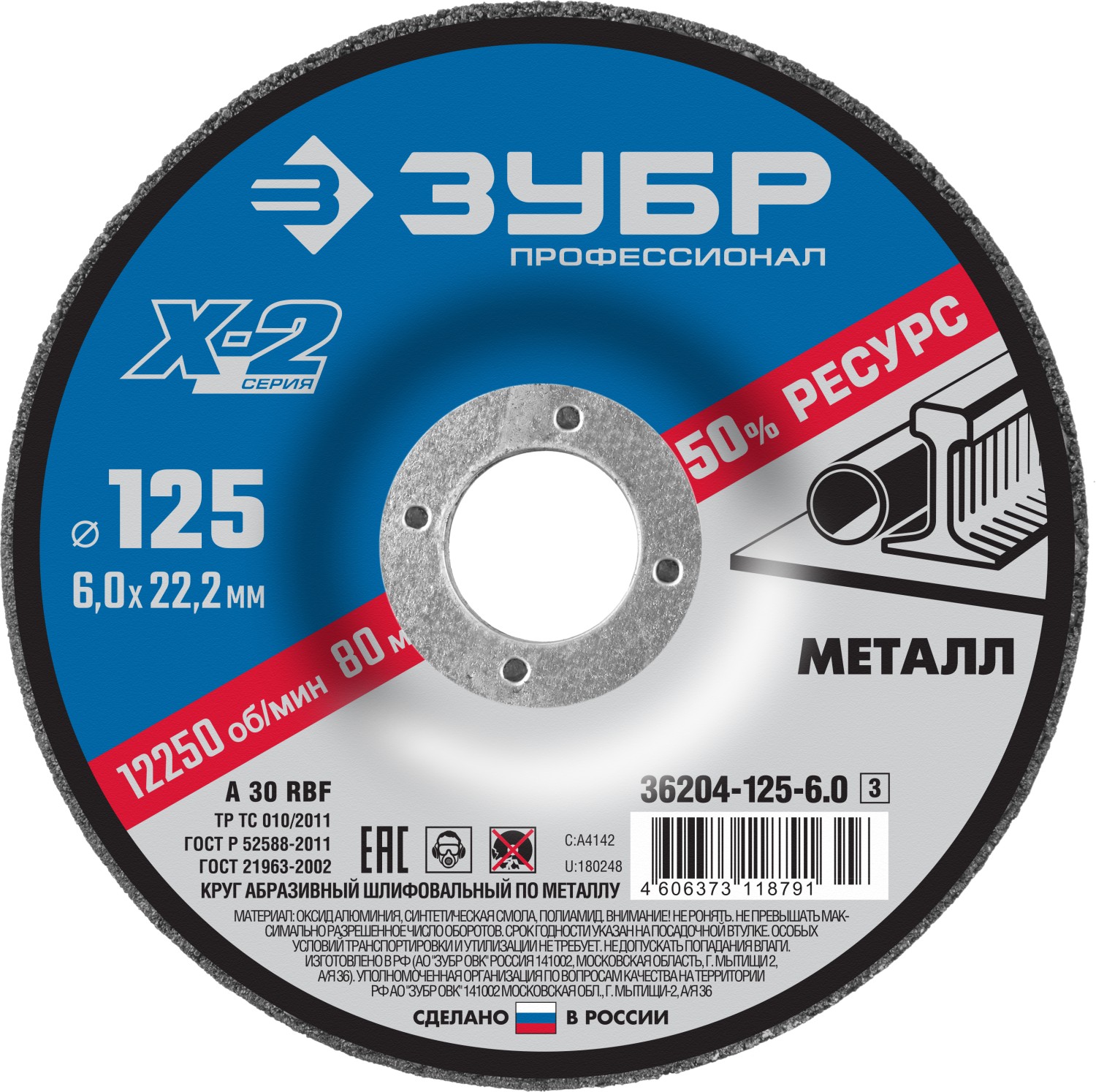 Круг шлифовальный "Х-2" по металлу 125х6х22,2 Зубр