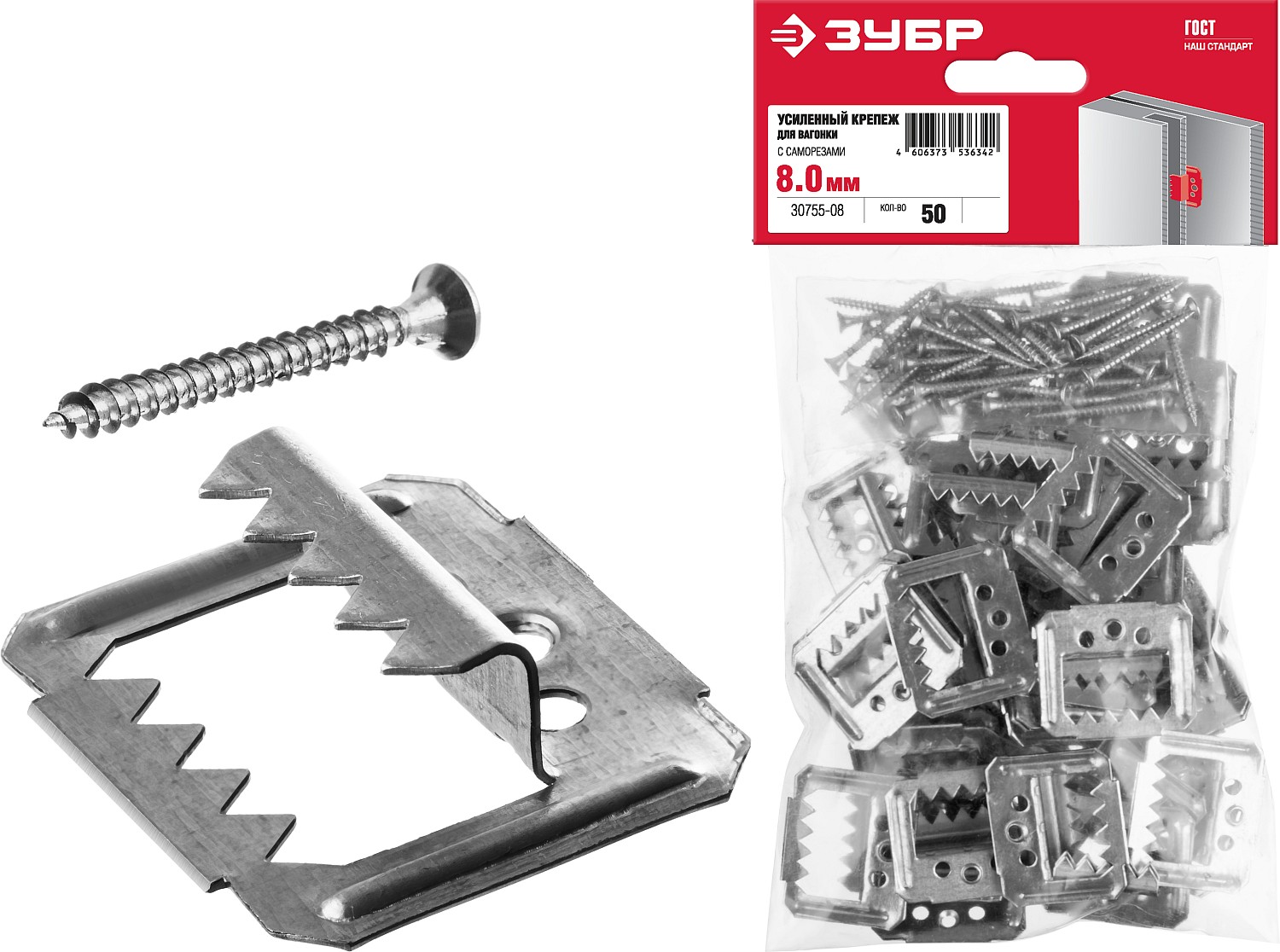 Усиленный крепеж для вагонки ЗУБР 8мм,50шт с саморезами, Кляймер-У2